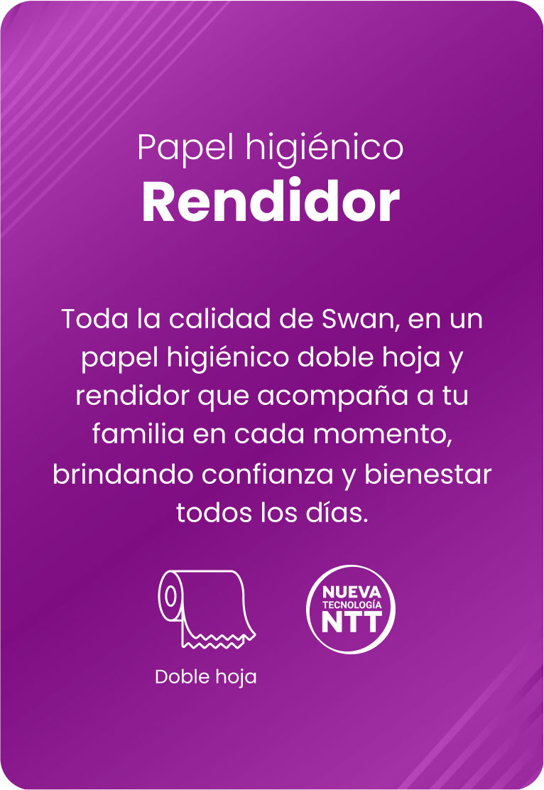 Swan es una marca que se distingue por la calidad de sus productos. Sus atributos de suavidad y absorción son posibles gracias a la innovadora Tecnología NTT.